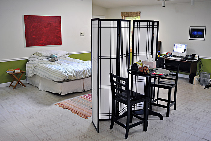 I will be living in this great room to myself on top of a detached garage from the house of another photographer from the paper I will be working at, the St. Louis Post Dispatch. Technically I am in a western suburb, Western Groves, which appears to have some historic downtown. More on that another time.